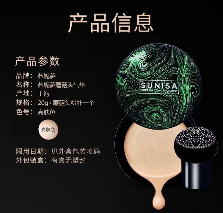 我们苏妮萨蘑菇气垫的功效就是,美白,滋润,保湿,提亮肤色,遮暇集一体的好产品,
